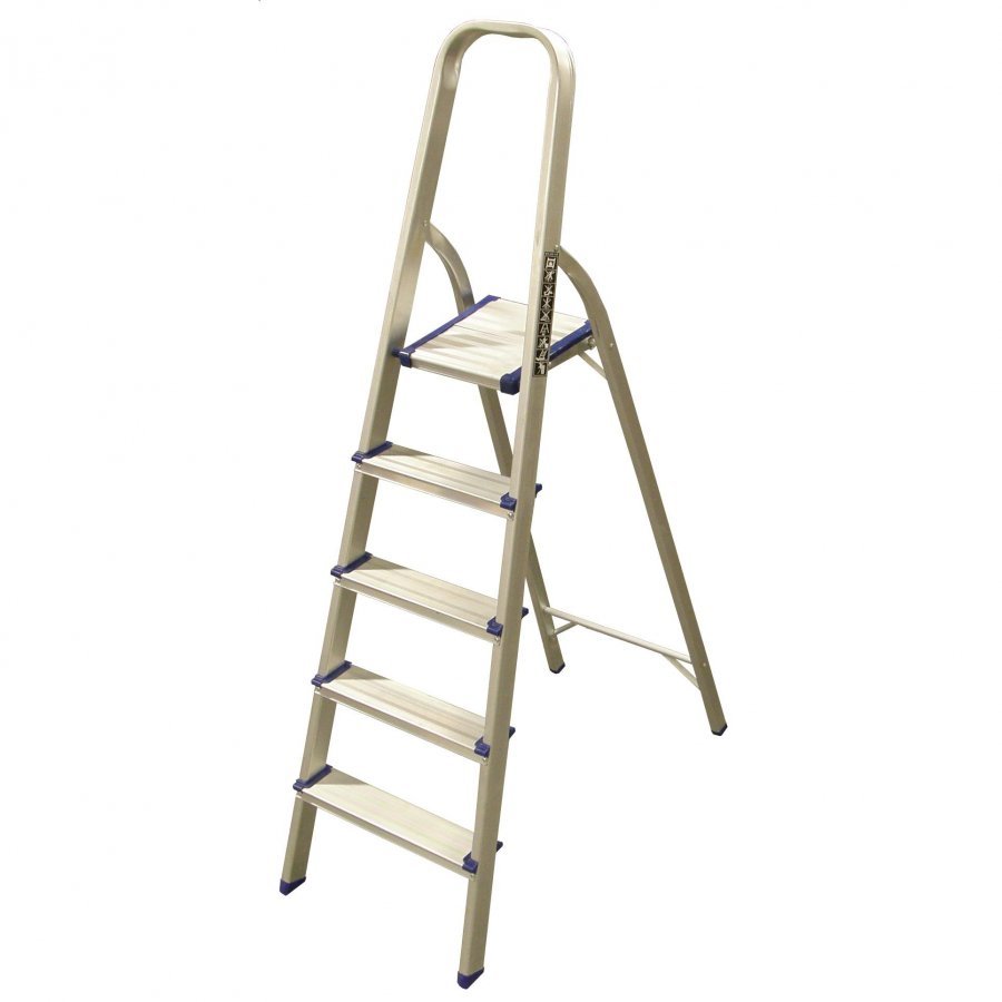 Kevyet alumiinirunkoiset taloustikkaat. – alumiininen rakenne. – 5-askelta. – maksimi kuorma: 150 kg. – EN 131-standardi.