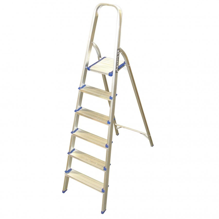Kevyet alumiinirunkoiset taloustikkaat. – alumiininen rakenne. – 6-askelta. – maksimi kuorma: 150 kg. – EN 131-standardi.